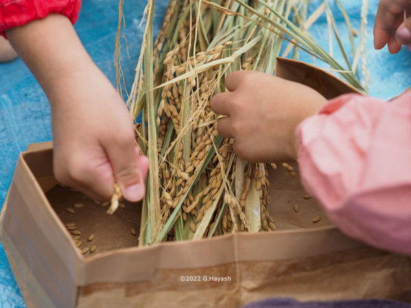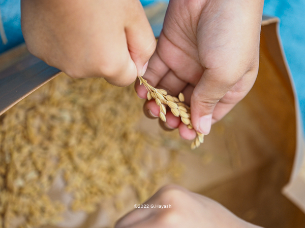 今年の脱穀 2025 10/21 SDGs 日々のこと 2025年10月21日 今年育てたお米の脱穀。出来る分は、指を使って籾を収穫。効率性を考えると無駄な作業に思えますが、私たちは無意味の中に意味があると考えています。Instagramにも脱穀の様子をお伝えしています。宜しければご覧ください。 SDGs 日々のこと
